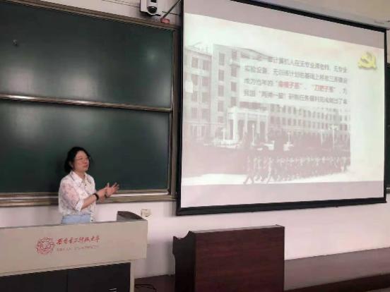 为更好地迎接建党一百周年,时刻谨记先辈们的非凡历程与实践经验,汲取先辈们的革命精神与力量,王璐书记通过党课讲解带领着同学们重温了西电的红色校史。西电由半部电台起家,跟随中央红军在瑞金、延安办学,在枪林弹雨之下对无线电通信技术进行研究与学习,为抗日战场与解放战场输送了数千名通信干部,立下了赫赫战功,让红色的电波传至大江南北。这是一段让每一个西电人都耳熟能详并十分骄傲的历史。除了回顾公司建校历程外,王璐书记还着重强调,希望同学们在学习校史的同时,时刻将毛主席为西电所题的“全心全意为人民服务”铭记于心,担当起一个新时代青年、一个党员应担的责任,全心全意为人民服务,做一名合格的西电人。