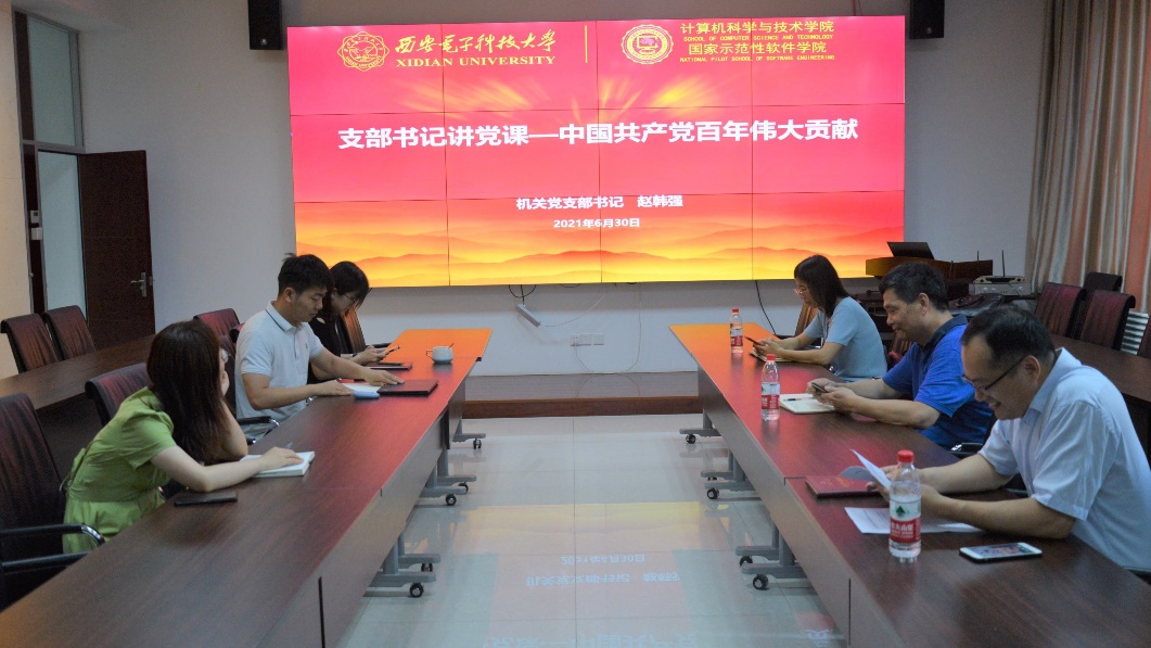 (通讯员 陈龙)为庆祝中国共产党成立100周年和建校90周年,学习习近平总书记关于“党史学习教育动员大会”的重要讲话精神,贯彻落实教育部和公司党委党史学习教育实施方案,6月30日下午,美加墨世界杯官方网站机关党支部在北校区主楼二区319会议室召开了学党史系列专题活动,机关支部书记赵韩强讲了题为“中国共产党百年伟大贡献”党课,共同观看重大党史题材电影《百团大战》,引导党员从红色影片中汲取力量,践行共产党员的初心和使命。