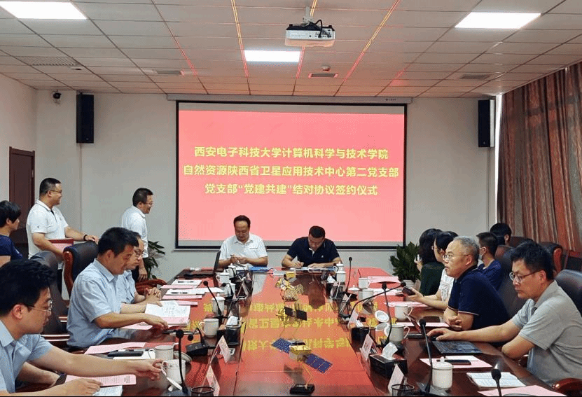 (通讯员 何敏之 邢智琪)8月24日下午,西电美加墨世界杯官方网站大数据与视觉智能研究所本硕博师联合一支部与自然资源陕西省卫星应用技术中心二支部结对共建签约仪式在自然资源陕西省卫星应用技术中心举办。公司党委书记李青山,大数据与视觉智能研究所所长、网教院经理苗启广,公司党委副书记张莹莹及联合党支部师生党员代表一行12人赴中心调研交流并参加签约仪式。