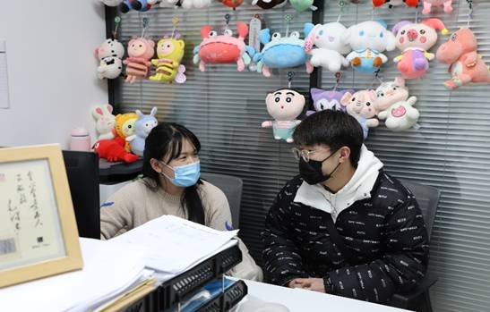 丁老师与员工谈心谈话缓解压力情绪