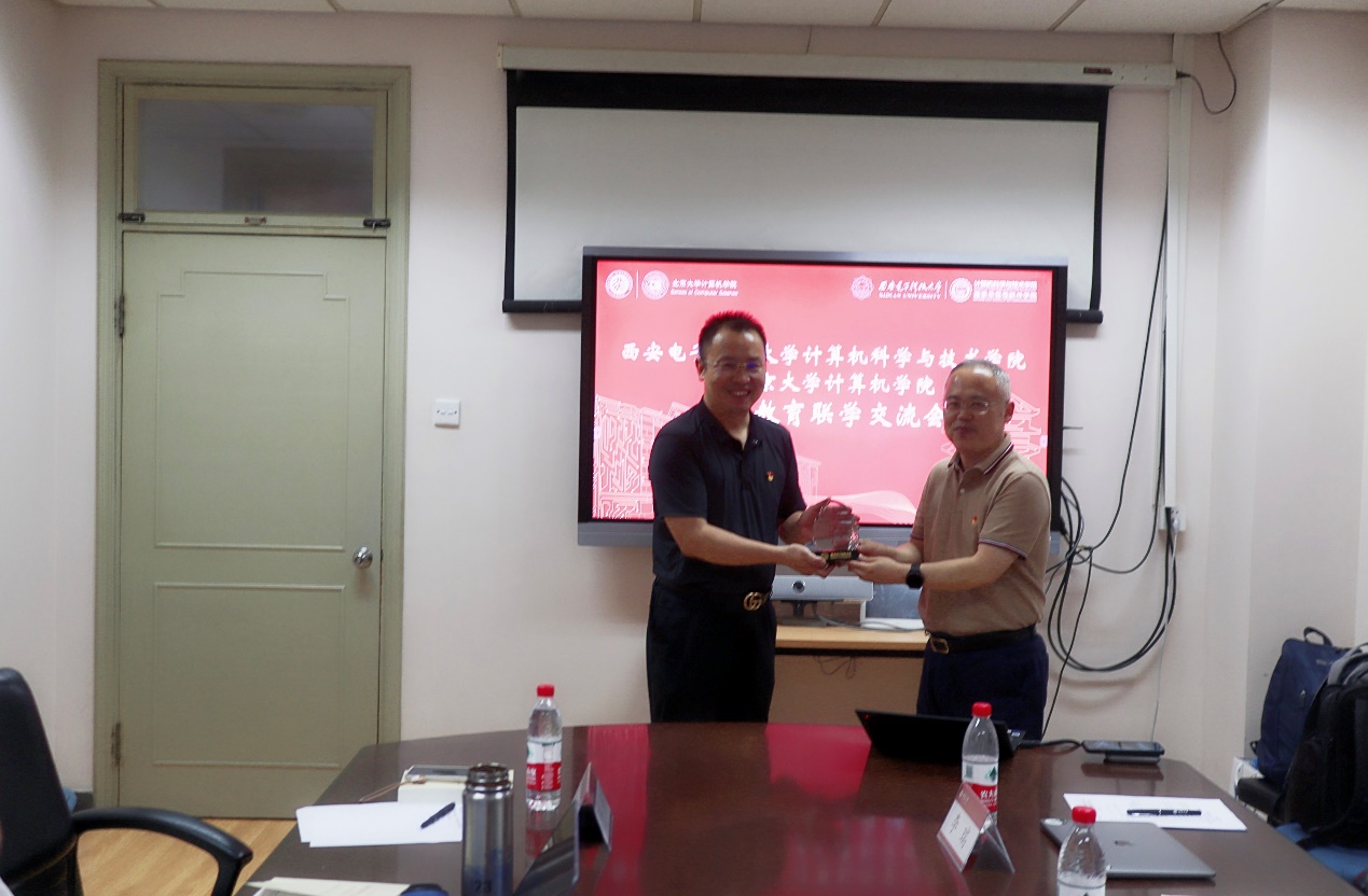 熊校良对公司一行表示欢迎,就北大计算机学科的历史沿革、团队力量、科学研究和人才培养等情况进行介绍。他表示,西电计科院输送了很多优秀的毕业生,希望能加强党建、人才培养和科学研究等方面的交流,促进兄弟高校合作共赢。
