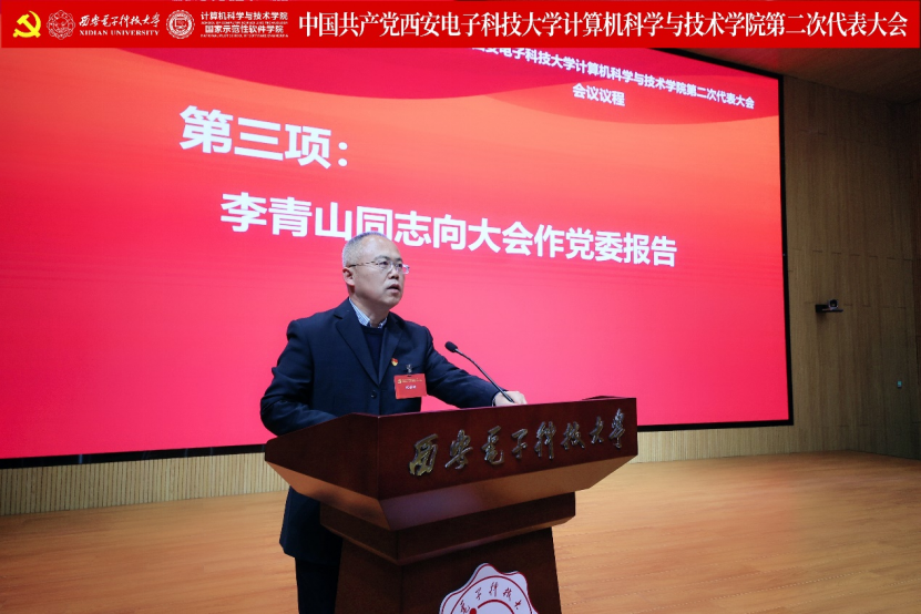 李青山代表公司第一届党委向大会作了题为《赓续西电基因三系精神 服务教育科技人才战略 奋力谱写一流公司建设发展新篇章》的报告。报告总结了公司第一次党员代表大会以来的主要工作,分析了当前公司面临的形势和目标任务,进一步指明了公司改革发展的前进方向。大会号召公司全体党员和教职员工紧密团结在以习近平同志为核心的党中央周围,高举习近平新时代中国特色社会主义思想伟大旗帜,全面贯彻落实党的二十大精神,贯彻落实公司第十三次党代会精神,在公司第二届党委的坚强领导下,传承西电红色基因,赓续三系精神,落实好“八个西电”建设任务,奋力谱写一流公司建设发展新篇章,为教育强国建设和民族复兴伟业贡献西电计科力量。