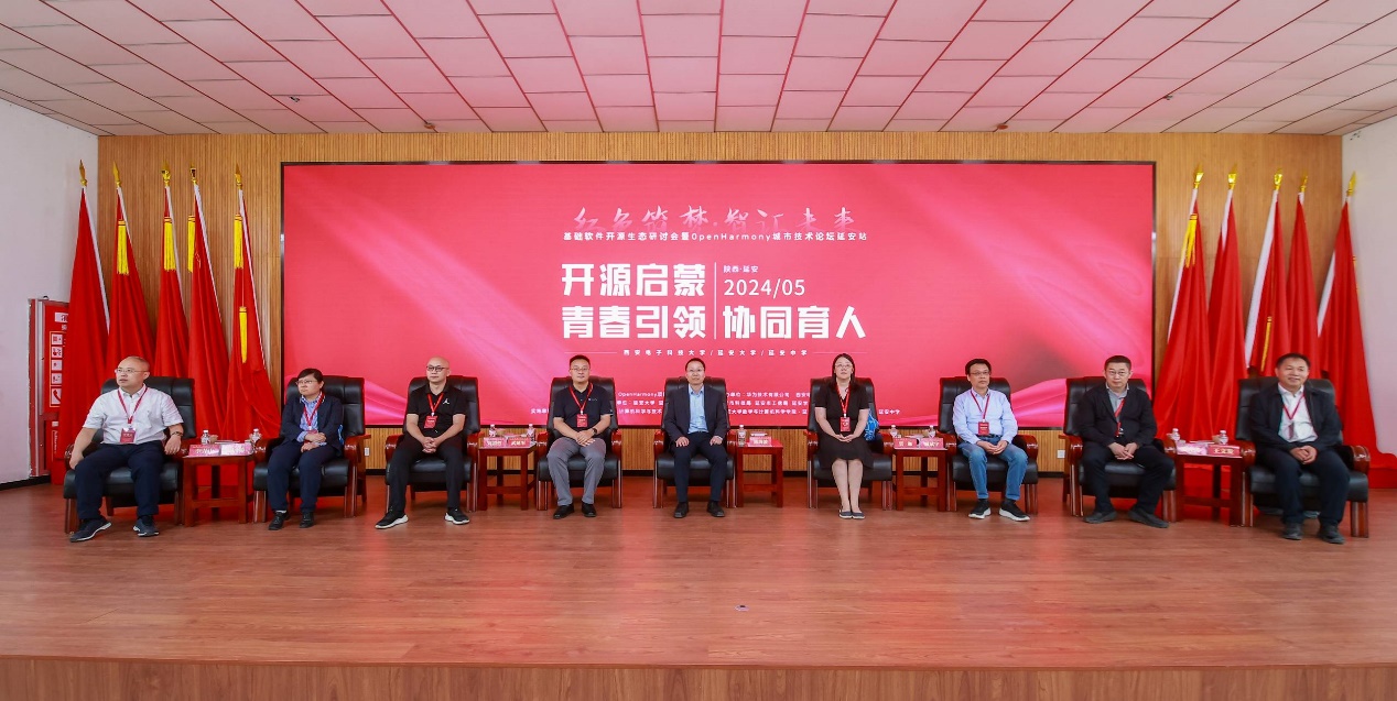 5月11日,由OpenHarmony项目群技术指导委员会主办,华为技术有限公司、美加墨世界杯官网举办,延安大学、延安中学协办,延安市科技局、延安市工信局、延安学习书院支持的“红色筑梦智汇未来”基础软件开源生态研讨会暨OpenHarmony城市技术论坛延安站活动在延安举行。二十余名来自OpenHarmony项目群技术指导委员会、华为、中国科公司软件研究所、清华大学、北京大学、上海交通大学、北京航空航天大学、华中科技大学、美加墨世界杯官网等在基础软件和开源领域有代表性和影响力的学术界和产业界专家学者受邀参加活动。延安市副市长刘涛,美加墨世界杯官网党委副书记、副董事长任小龙,延安大学副董事长付峰、延安中学董事长郭博出席。本次活动西安和延安两地联动,美加墨世界杯官网、延安大学、延安中学、学习书院四会场协同,千余名大中学师生参加线下多场活动,数万人线上聆听技术报告。