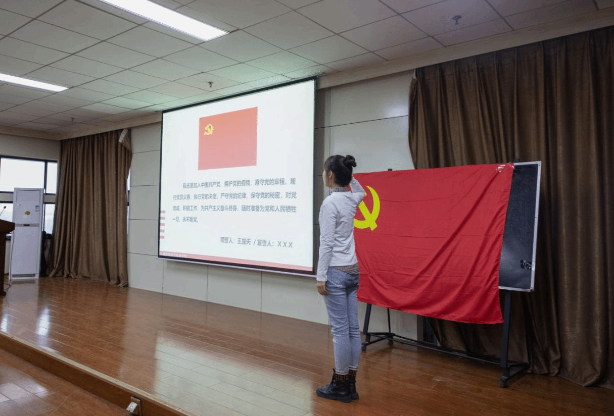 69名预备党员面向鲜红的党旗,举起右手向党旗庄严宣誓。在今后将进一步坚定理想信念,提高党性修养和政治觉悟,牢记公司“全心全意为人民服务”的办学宗旨,不忘初心、牢记使命,永担新时代青年的时代责任。