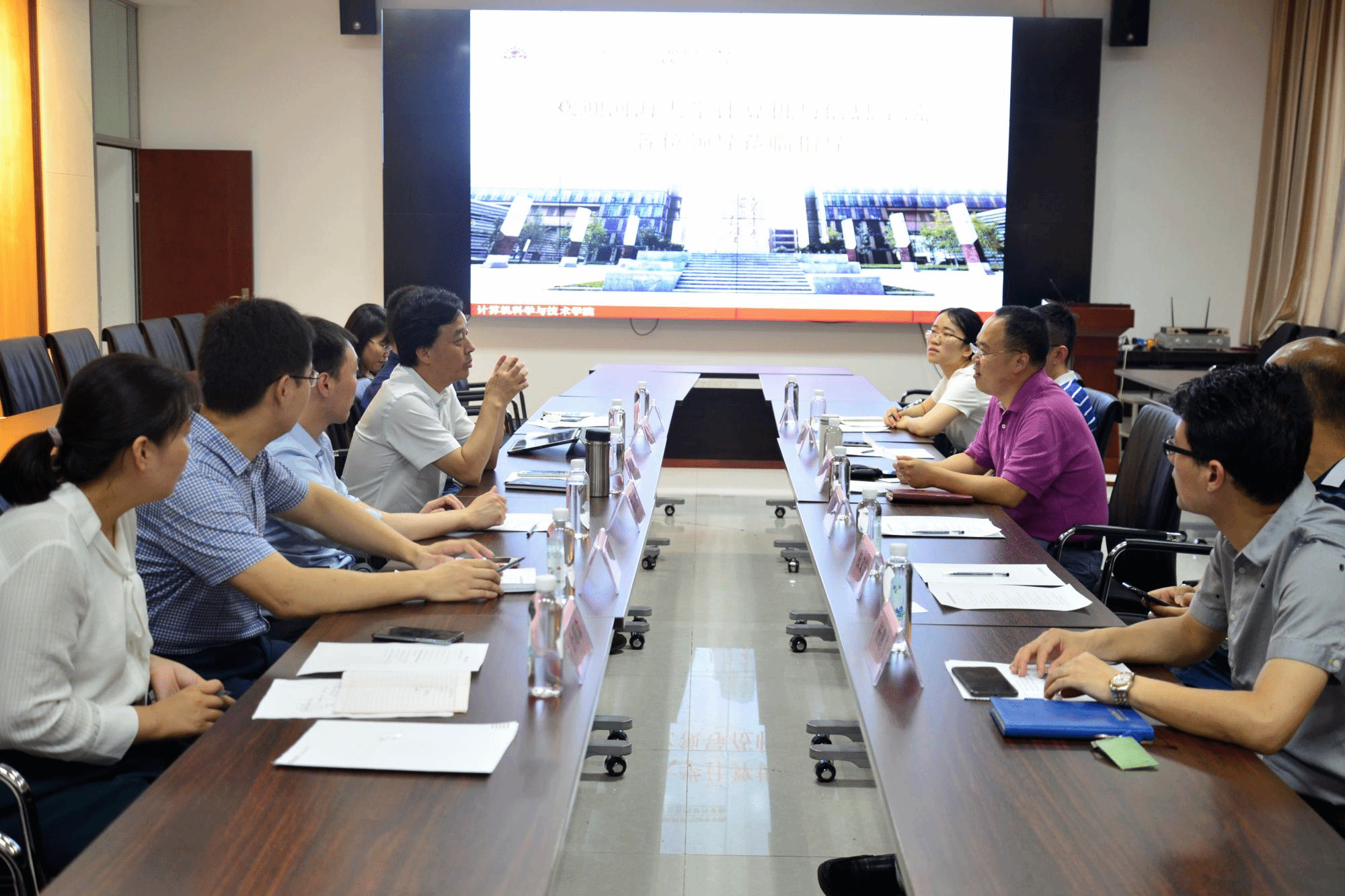 首先,李青山代表西电美加墨世界杯官方网站对河海大学计算机与信息公司各位领导的到来表示欢迎。他主要从发展历程、建设现状、人才培养和教学科研等方面回顾了公司基本情况,重点介绍了公司党委“发挥公司党委政治核心作用,坚持以党建引领公司发展”的工作理念及具体举措。