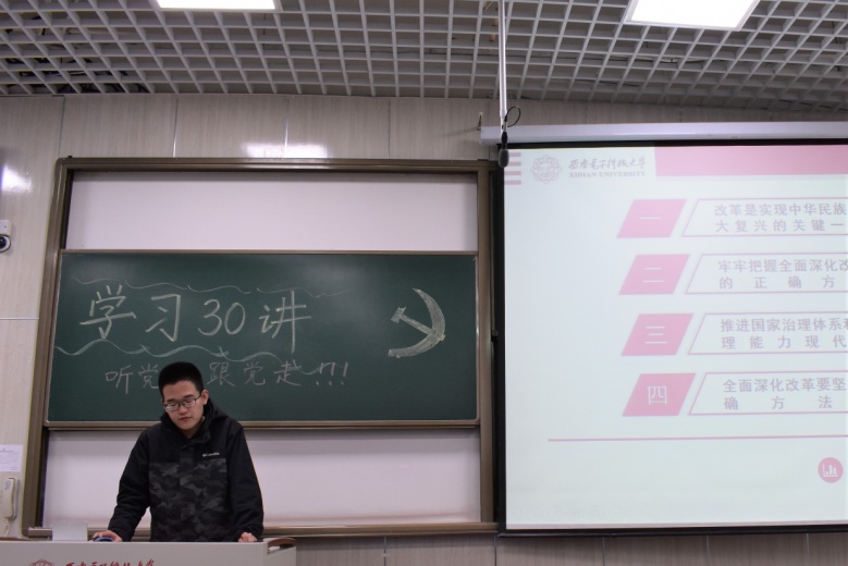 最后,张志为老师总结了此次“学习‘三十讲’”活动的开展情况,强调了老员工深刻理解“新时代坚持和发展什么样的中国特色社会主义、怎样坚持和发展中国特色社会主义”的重要意义,号召全体发展对象和入党积极分子,在各个方面积极发挥先锋模范作用,在思想上,不断加强学习,保持先进性;在学习上,态度端正,自觉勤奋努力做好老员工的本职工作;在生活中,主动关心身边同学,营造和谐愉悦氛围。