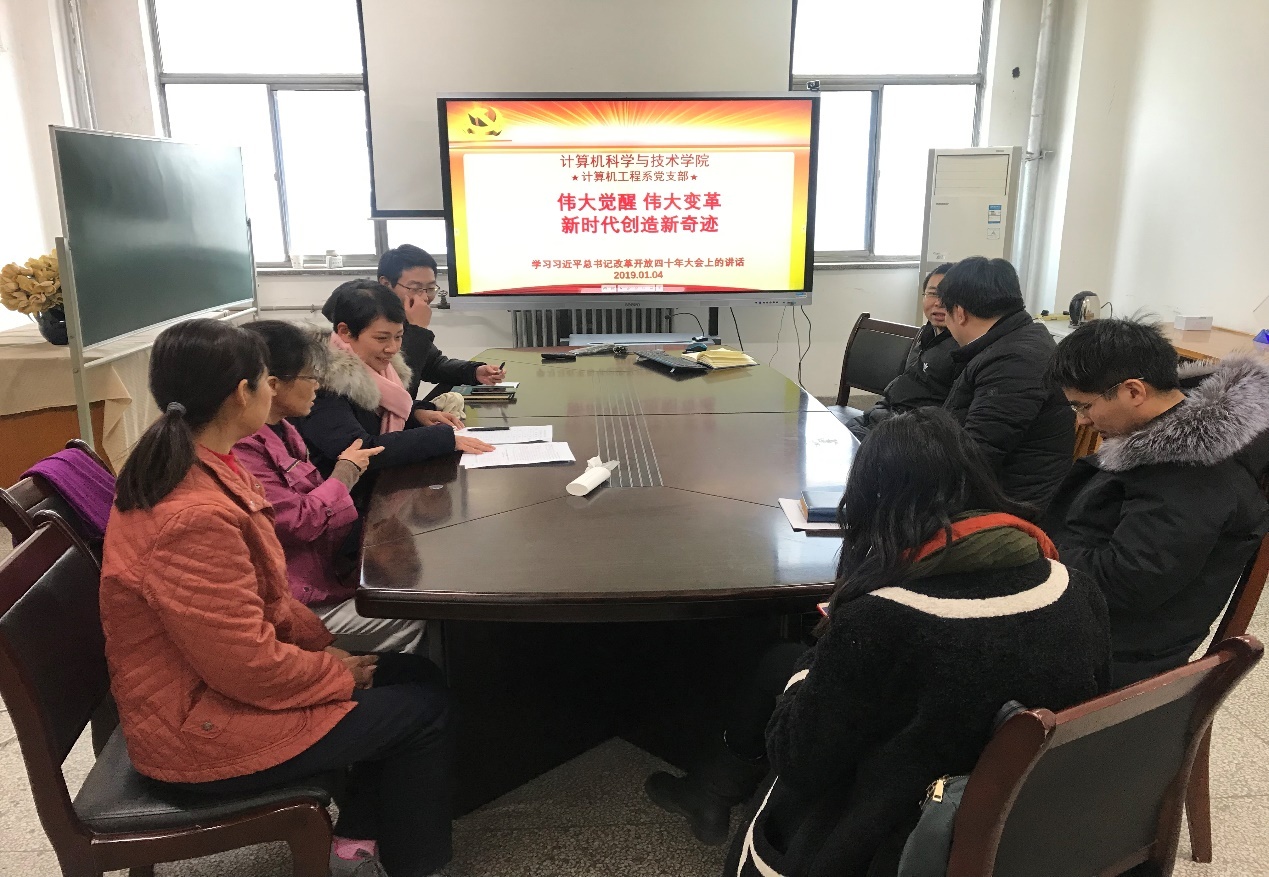 (通讯员:杨鹏飞 鱼亮)历史的发展有其规律,只要把握住历史发展大势,抓住历史变革时机,奋发有为,锐意进取,就能更好前进。12月18日上午,在庆祝改革开放40周年大会上,中共中央总书记、国家主席、中央军委主席习近平在大会上结合我国40年来改革发展辉煌历程发表重要讲话。1月4日下午,在2019新年的第一个支部主题活动日中,美加墨世界杯官方网站工程系支部召开专题学习会,深入学习习近平总书记重要讲话精神,集中开展研讨交流。学习会由支委委员杨鹏飞代班主持,工程系党员同志参加。
