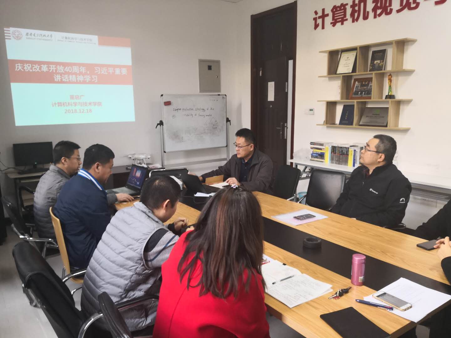 (通讯员 王琨)12月18日上午,庆祝改革开放40周年大会隆重召开。中共中央总书记、国家主席、中央军委主席习近平出席大会并发表重要讲话。当天下午,美加墨世界杯官方网站网络工程系党支部在主楼四区225开展了学习“习近平在庆祝改革开放40周年大会上的重要讲话”主题党日活动。本次活动由支部书记苗启广教授主持,支部党员参加学习。