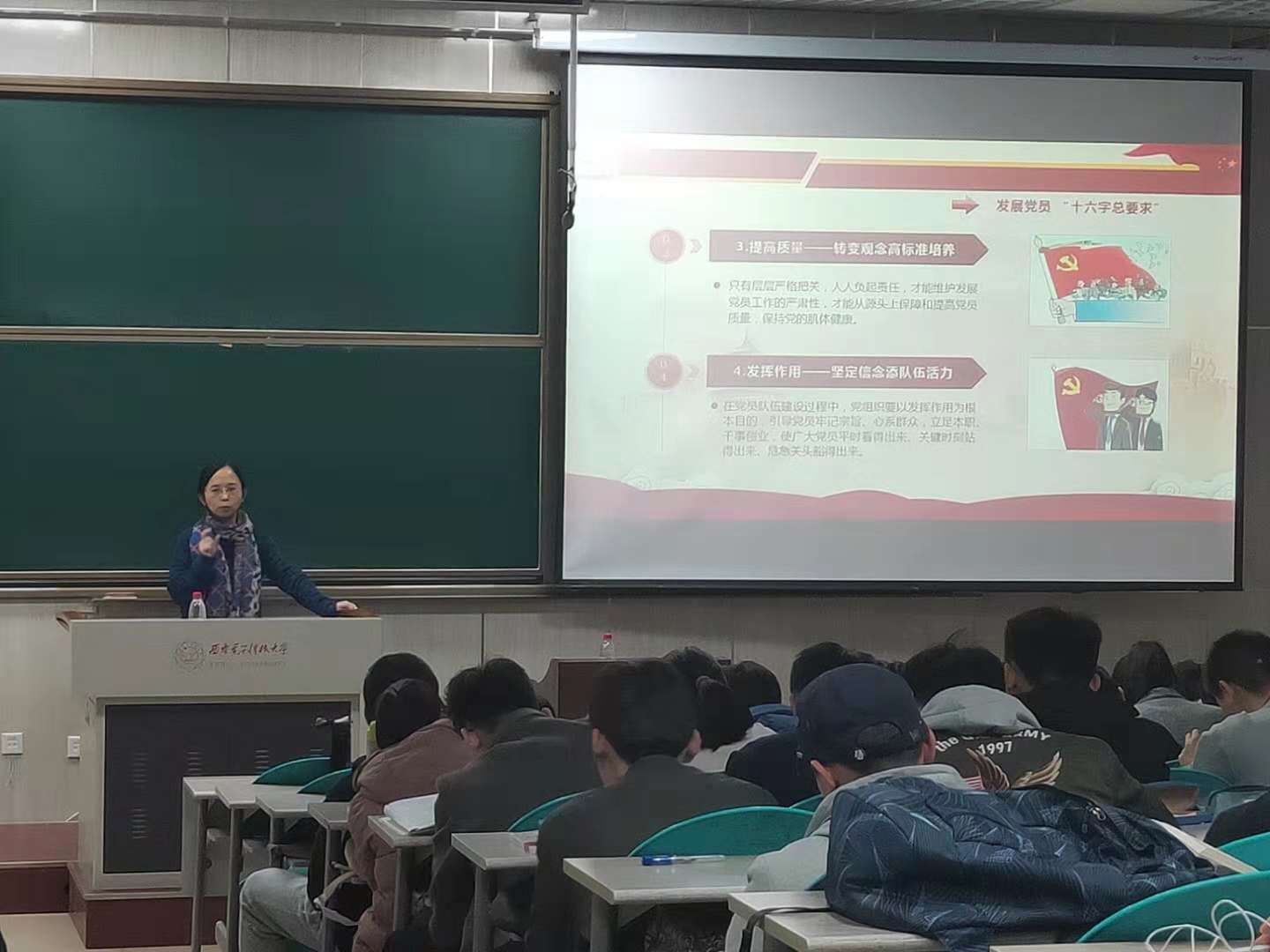 公司党委书记李青山教授、原软件公司党委书记李革建教授、公司党委组织部副部长董大威、公司党委副书记张莹莹为培训班上党课。李青山以《新思想 新使命 新实践》为题,着重对习近平新时代中国特色社会主义思想进行全面解读,阐述了党的伟大成就和时代使命,鼓励同学们立足自身实际,投身党的事业的伟大实践。董大威运用经典实例对党章进行了解读,勉励同学们要在学习理解党的基本理论上下功夫,以党员的标准严格要求自己。李革建从党的十九大的主题“不忘初心、牢记使命”切入,结合公司团队建设、人才培养目标等情况,鼓励大家争做“三有”西电人。张莹莹对党员发展的工作程序和环节进行了详细说明,要求同学们端正入党动机,争取早日入党。