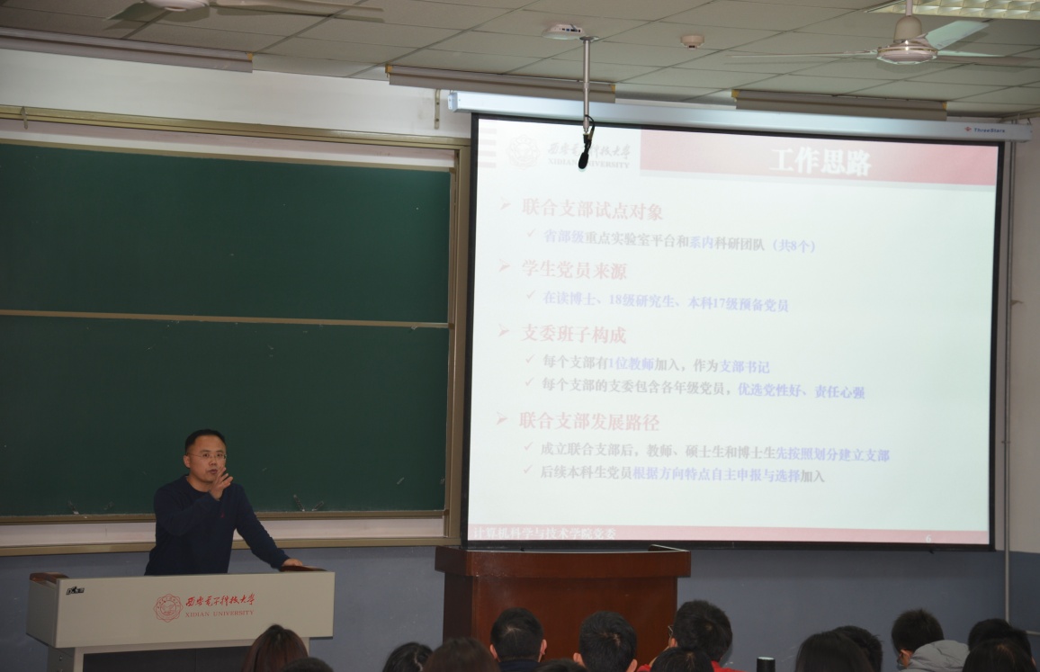 据悉,公司党委在前期深入调研的基础上,针对基层党建弱化等问题,认真领会教育部有关优化高公司党支部设置的有关精神,积极探索,精心制定了本硕博师联合党支部设置方案。经公司党委研究同意,以全体博士生党员、2018级全日制硕士生党员、2017级本科生党员为主体,以各教职工党支部推荐优秀青年教师党员为党支部书记,依托实验室、项目组,成立8个本硕博师党支部。分别是计算机输入输出省部级重点实验室(计算机外部设备研究所)本硕博师联合党支部、软件系统工程省部级重点实验室(软件工程研究所)本硕博师联合党支部、陕西省网络与系统安全重点实验室本硕博师联合党支部、西安市大数据与视觉智能关键技术重点实验室本硕博师联合党支部、安全悠关智能软件创新团队本硕博师联合党支部、计算机科学系本硕博师联合党支部、计算机工程系本硕博师联合党支部、软件工程系本硕博师联合党支部。