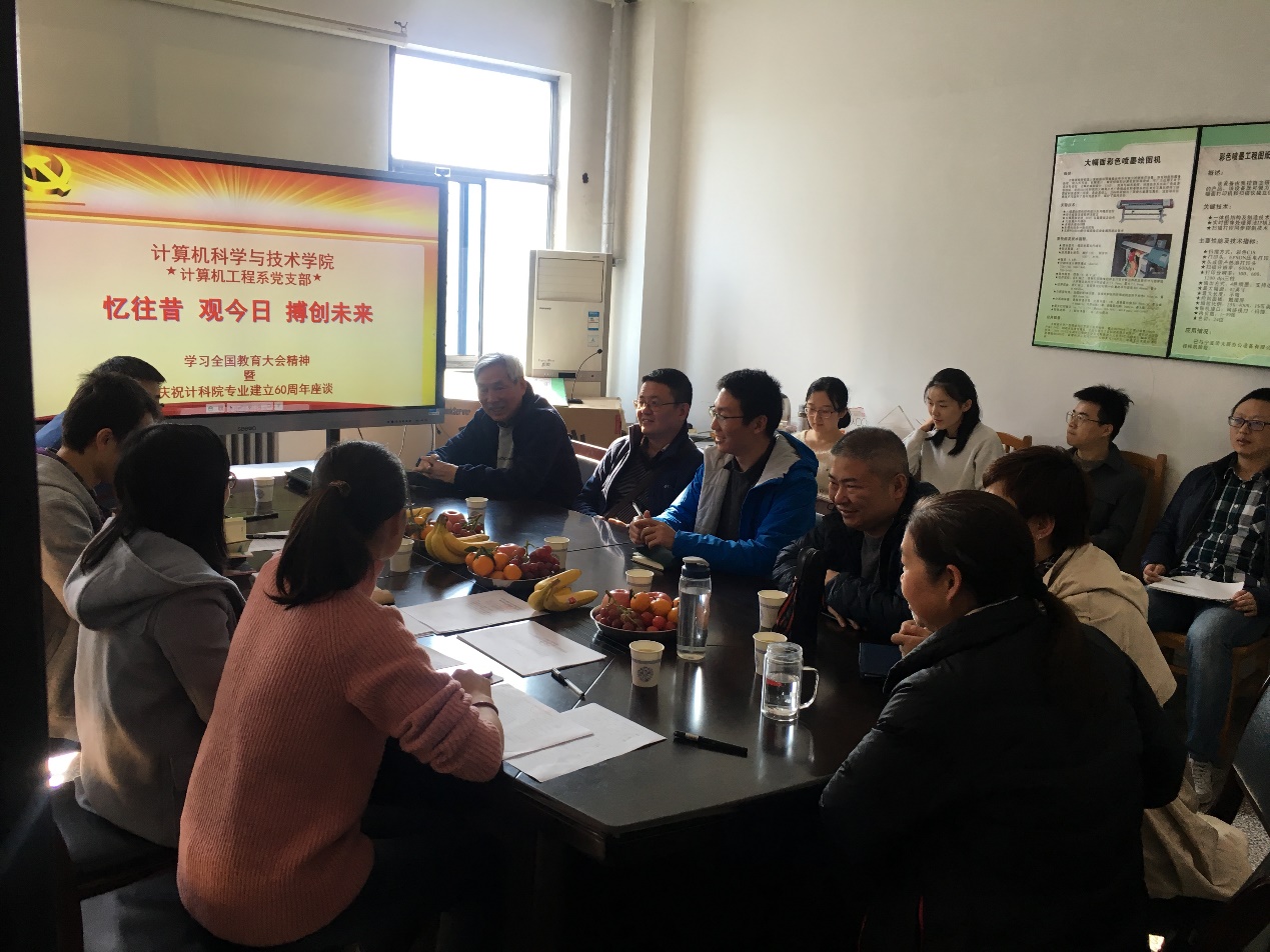 (通讯员 鱼亮 姚勇 杨鹏飞)为深入学习党的十九大报告和习近平总书记全国教育大会讲话精神,庆祝美加墨世界杯官方网站建专业60周年,计算机工程系党支部于2018年11月9日下午举行以“忆往昔 观今日 搏创未来”为主题的座谈会。通过此次座谈活动,进一步加强了基层党组织思想建设和公司优秀历史传统传承。计算机工程系党支部书记鱼亮主持了此次活动,美加墨世界杯官方网站执行经理崔江涛教授、计算机工程系党支部委员、多位党员和教师共同参加了此次座谈。本次座谈活动特别邀请到公司周利华教授,与大家分享公司历史、发展脉络和成就。