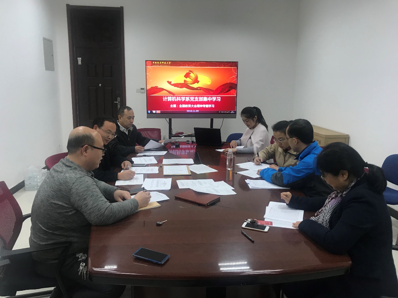 (通讯员:王晓丽)9月14日教育部党组下发《关于认真学习贯彻全国教育大学精神的通知》,要求各省、自治区、直辖市党委教育工作部门、教育厅(教委),新疆生产建设兵团教育局,有关部门(单位)教育司(局),部署各高等公司、部省合建各高等公司党委认真做好学习贯彻全国教育大会精神各项工作。为此,公司党委积极响应、统一部署,计算机科学系党支部认真筹划安排,结合公司2018-2020年专业技术岗位聘任工作实施方案和教学改革,于11月9日下午主楼IV区209会议室开展学习全国教育大会精神主题活动。本次活动由科学系党支部副书记王小兵同志主持。