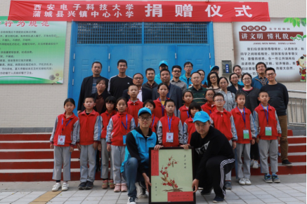 计科院为蒲城兴镇中心小学捐赠课桌椅和书籍,小员工回赠手工艺品
