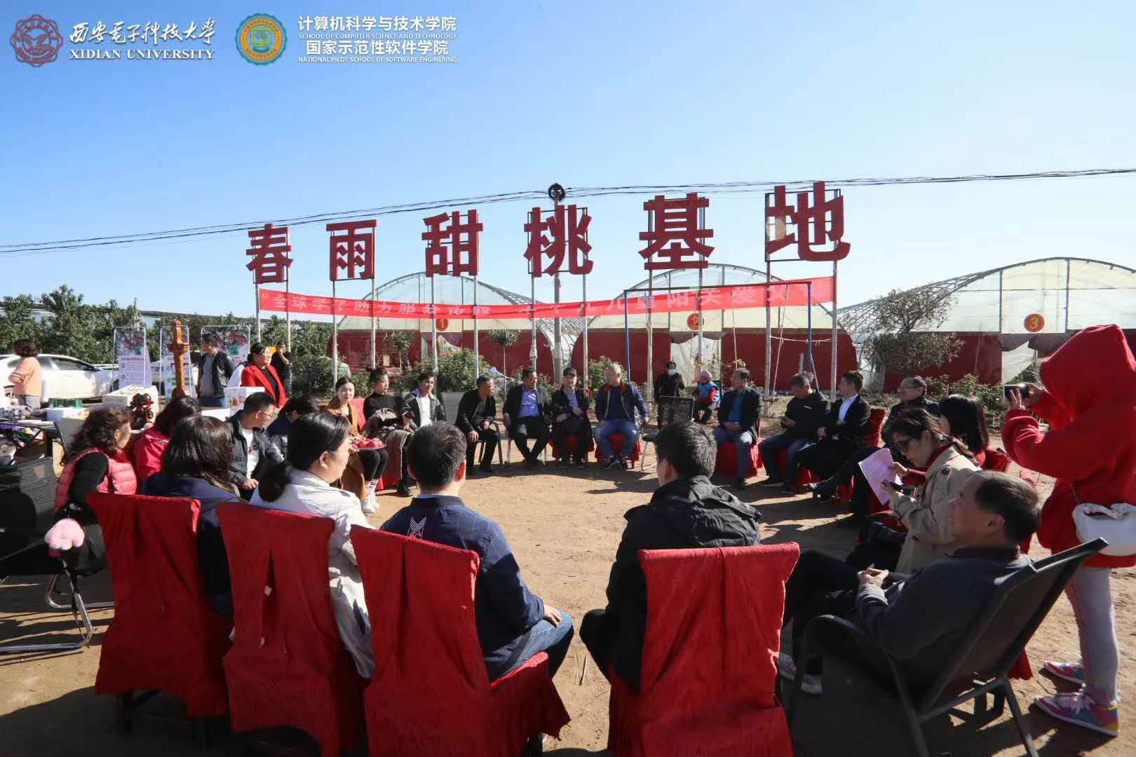 在直播结束后,校扶贫办主任沈强、计科公司党委书记李青山、校留学人员联谊会副秘书长王琳、刘志镜教授“山货帮”团队、校留联会计科院分会带货代表、中国农科新闻网执行总编曹雅静及企业代表等围坐在春雨甜桃合作社的桃园里,举行了题为“田间擦碰科技富农新火花,地头共绘智慧农业新画卷”的科技扶贫座谈。