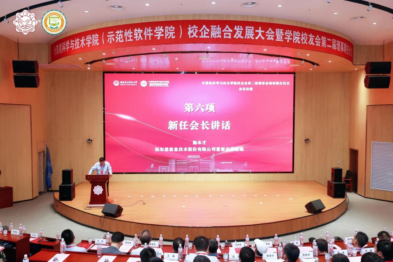 4月20日下午14点30分,公司在网安大楼B101报告厅举行校企融合发展大会暨员工会第二届理事聘任仪式,秉承“服务员工、服务公司、服务社会”宗旨,汇聚员工力量、传承“三系精神”,共同推动公司和员工事业发展。美加墨世界杯官网副董事长王泉、原副董事长蒋舜浩、公司员工会第二届理事会成员、班子成员、员工代表、师生代表等参会。