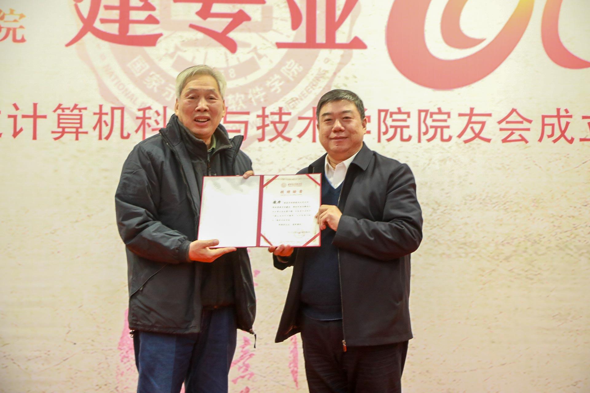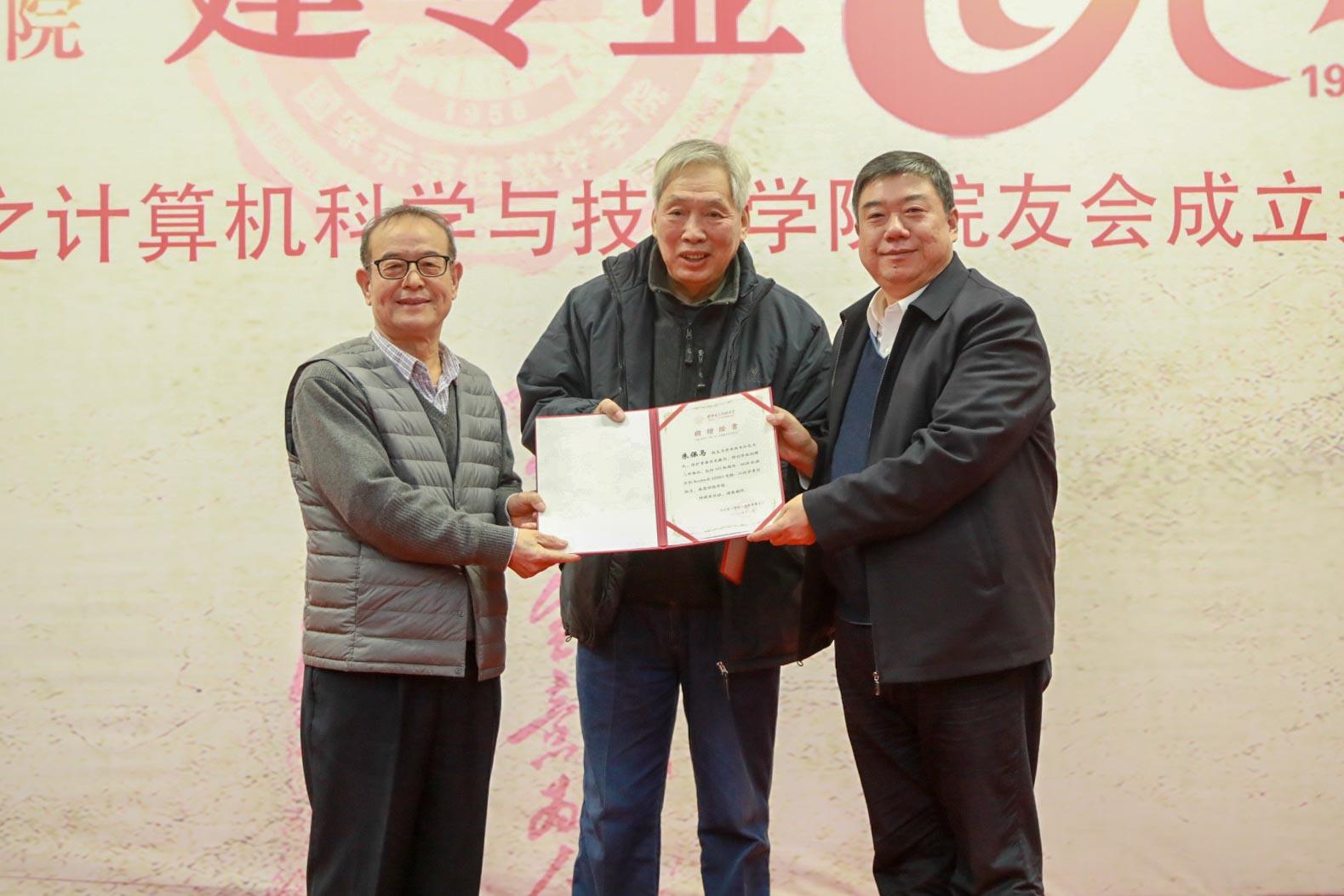会议还举行了院友捐赠仪式。公司老教师周利华、徐学洲代表1957级员工朱保马向公司捐赠三件物品,包括102机插件、441-B机插件、Rockwell AIM65电脑。据介绍,102机是我国第一台军用数字计算机,1962年上级批准调至公司供教学使用,是当时西北地区唯一一台电子计算机。441-B计算机是我国计算机由电子管向晶体管升级换代的晶体管计算机,公司教师参与生产,1967年交付某海军基地使用,稳定运转近二十年。Rockwell AIM65电脑1978年研发成功,采用美国MOS Technology公司的6502处理器,可使用Pascal,FORTH语言进行编译。周利华老师代表1960级院友、茅盾文学奖获得者凌力向公司捐赠个人作品文集以及珍贵手稿。1959级院友徐宗昌向公司捐赠IETM技术与应用丛书一套、《IETM项目经理入门指南》一册。杨银堂为捐赠人颁发了捐赠证书。