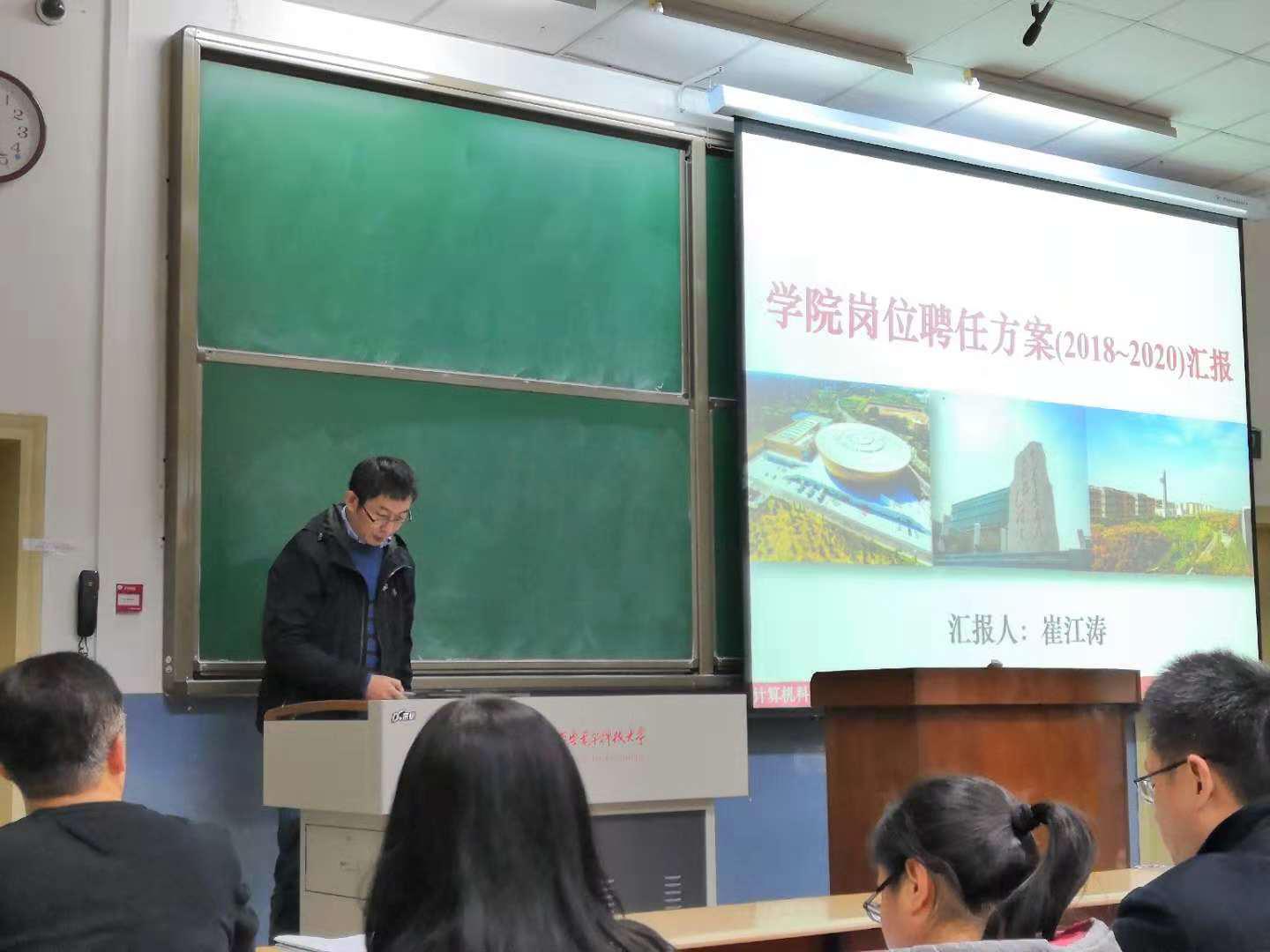 公司执行经理崔江涛向大会汇报了计科院《2018-2020专业技术岗位聘任方案》,并提请大会审议通过。他解读了方案的总体思路、岗位设置及职责等主要内容,介绍了该方案的制定、广泛征求基层意见和修改完善等情况。他指出,根据公司整体工作部署,公司将通过《方案》的实施,真正建立“分类设岗、按岗聘用、目标管理”的岗位管理体系,进一步推动公司“一流学科”建设战略落地落实。